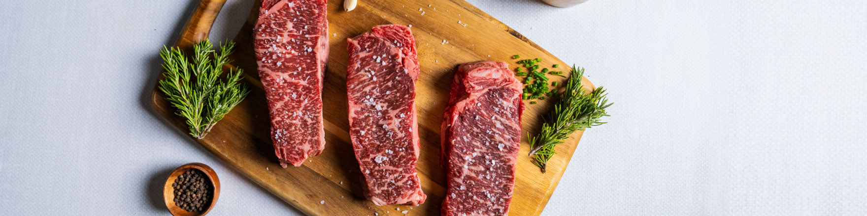 Want to start? Shop American Wagyu New York Strip Steaks delivered directly to your door.