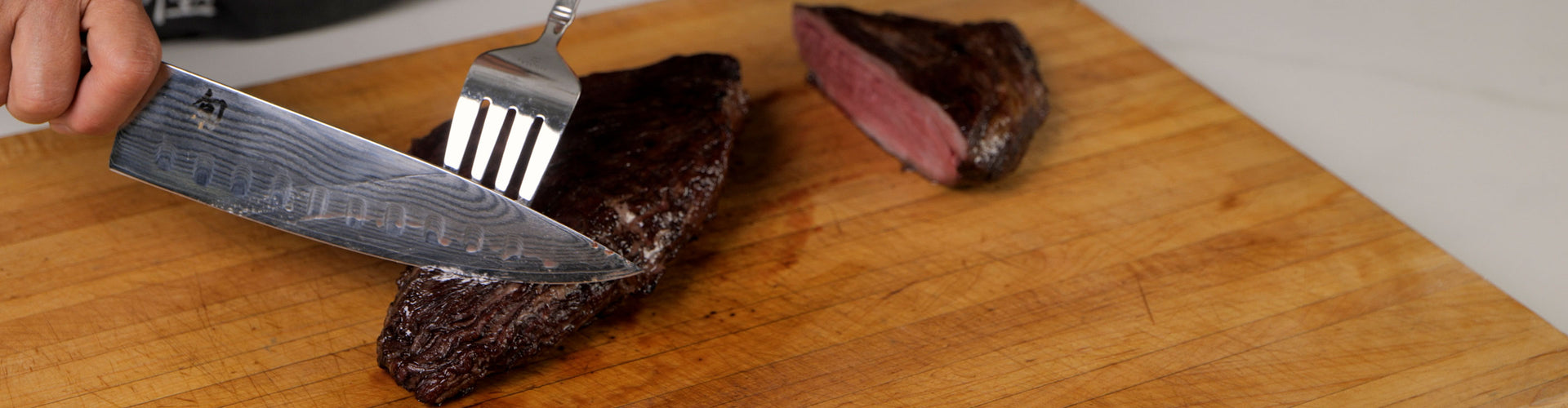 One of the most important (and most overlooked) steps. Tri tip has two grain directions—start at the pointed end and slice perpendicular to the grain. As you move to the thicker end, rotate the tri tip to continue slicing against the grain.