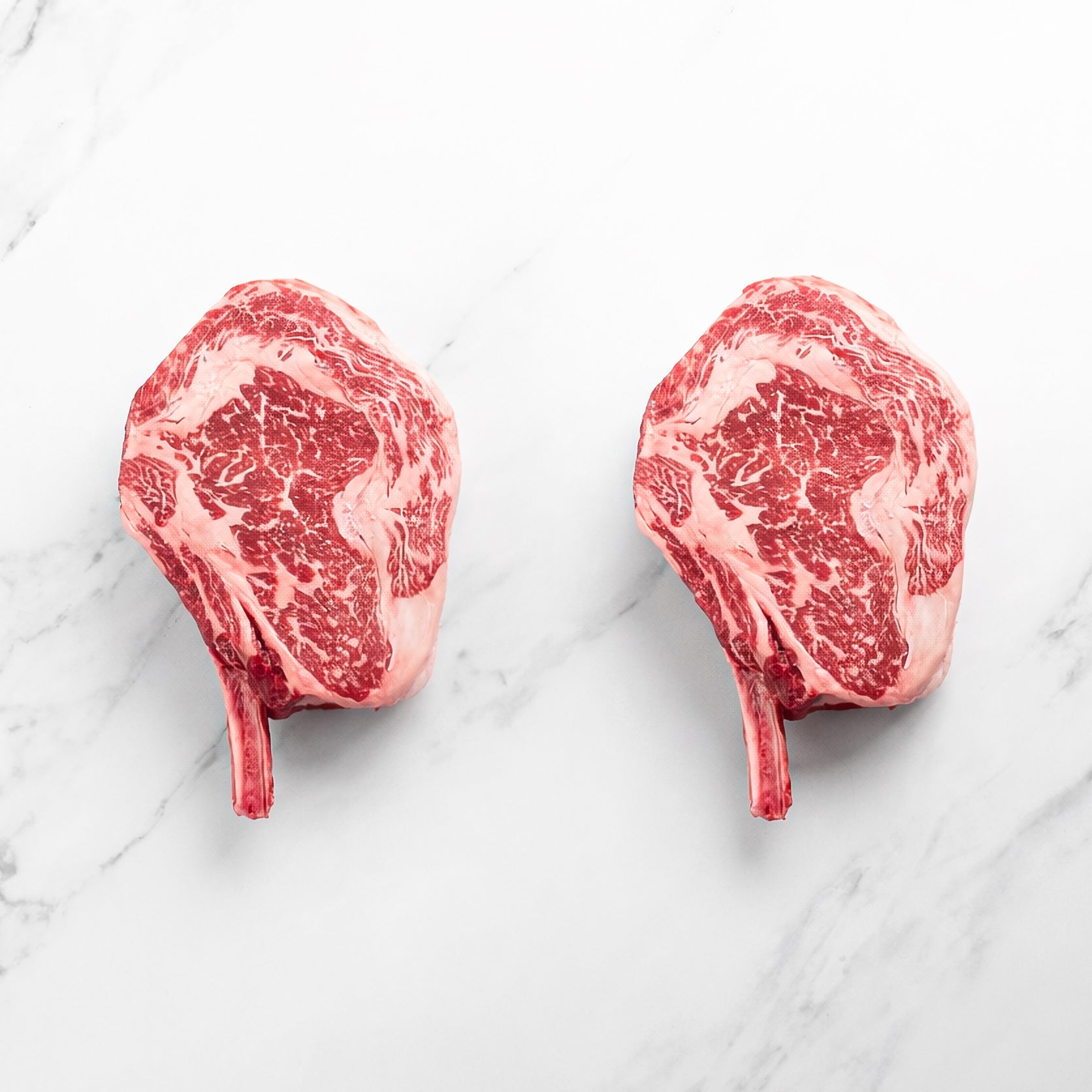 Two American Wagyu Gold® Cowboy Steaks—large, thick-cut, bone-in ribeyes with spectacular marbling. Offered as a 2-pack, this impressive cut delivers both quantity and quality, making it ideal for sharing or an unforgettable steakhouse-style meal at home.