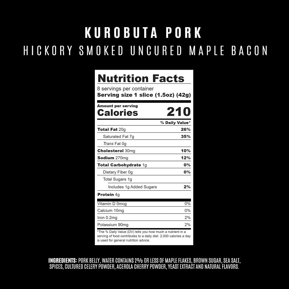 Enjoy this flavorful uncured bacon made by the artisans at Journeyman Meat Co. using SRF Kurobuta pork. Brined with real maple syrup and smoked over hickory wood to create a truly gourmet bacon.