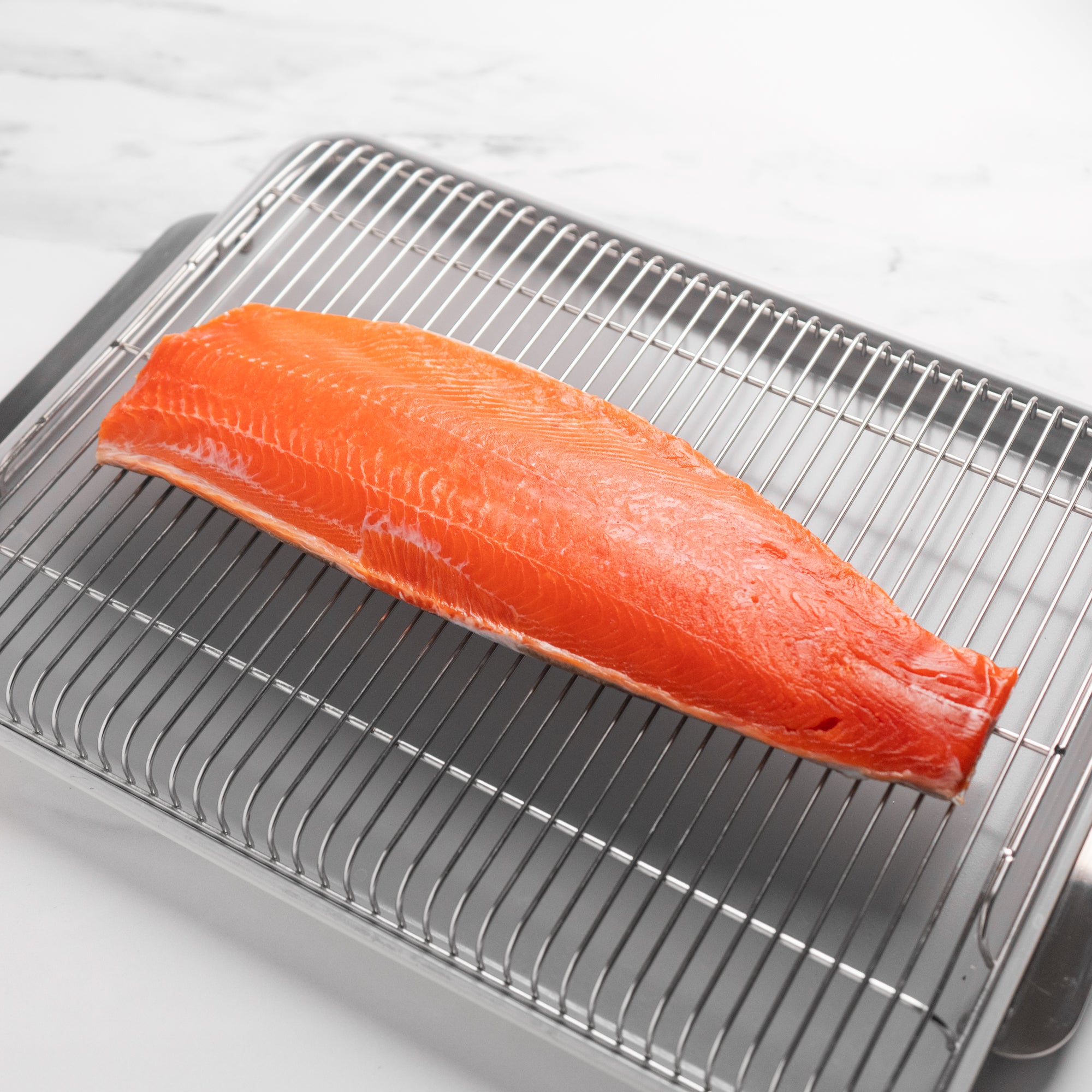 This generous filet offers the full experience of wild sockeye salmon. Perfect for family meals or entertaining, it’s an impressive centerpiece that cooks beautifully on the grill, in the oven, or under the broiler. Its naturally higher fat content helps keep it moist and flavorful, whether you roast it whole with herbs and citrus, grill it skin-on for crisp edges, or flake it into salads and grain bowls. For a restaurant-quality finish, serve medium-rare to medium, or use it for raw preparations like poke or crudo.