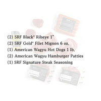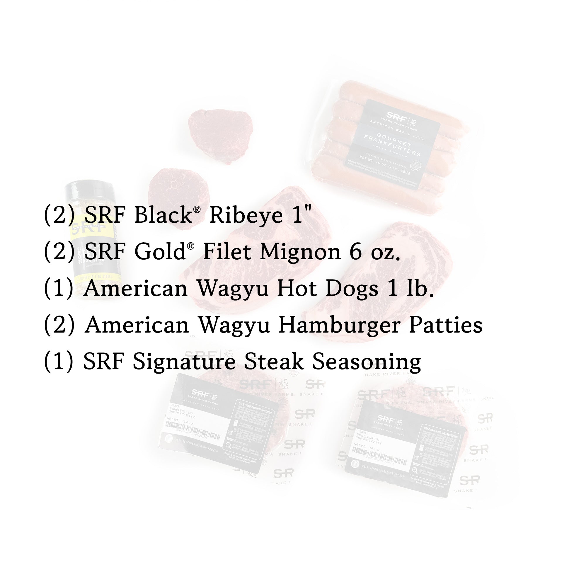 This box answers the eternal question, “What should I grill?”. Packed with steaks, burgers and dogs, this package also includes our SRF Signature Steak Seasoning. There’s something here for any hungry guest.