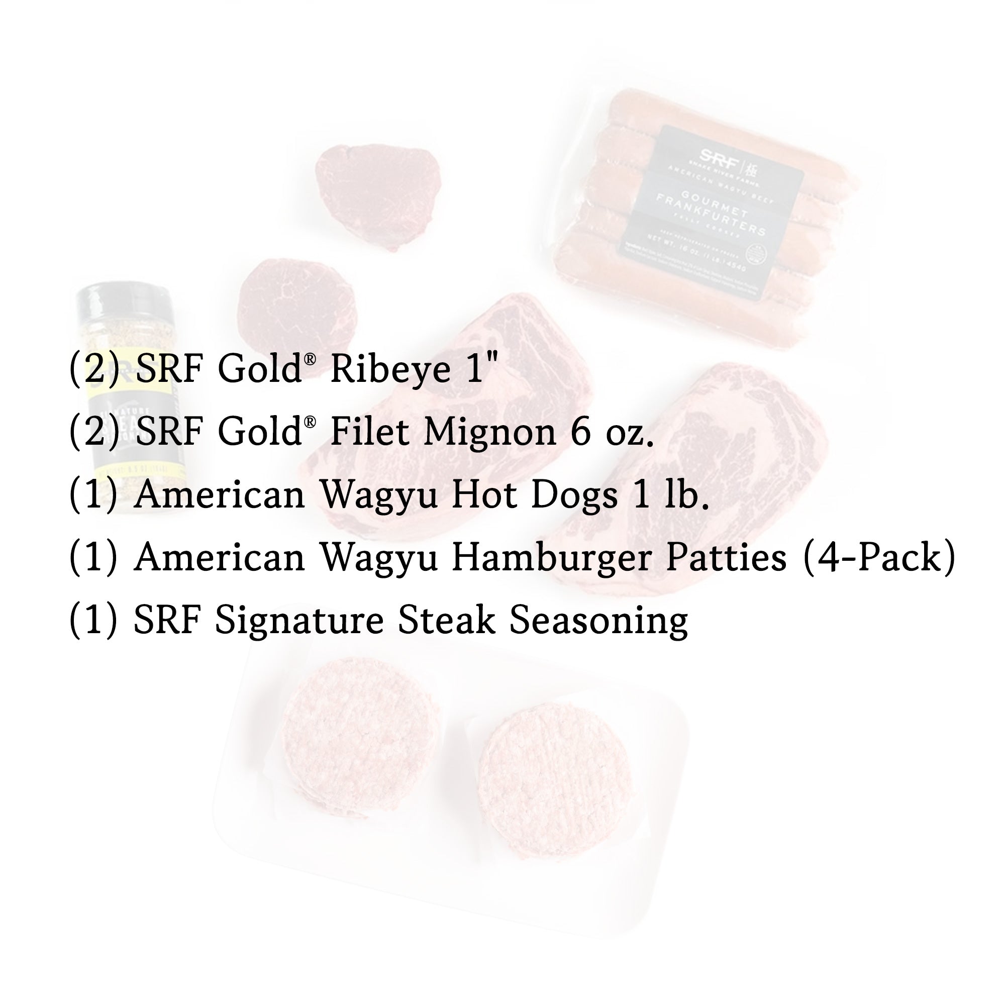 This box answers the eternal question, “What should I grill?”. Packed with steaks, burgers and dogs, this package also includes our SRF Signature Steak Seasoning. There’s something here for any hungry guest.